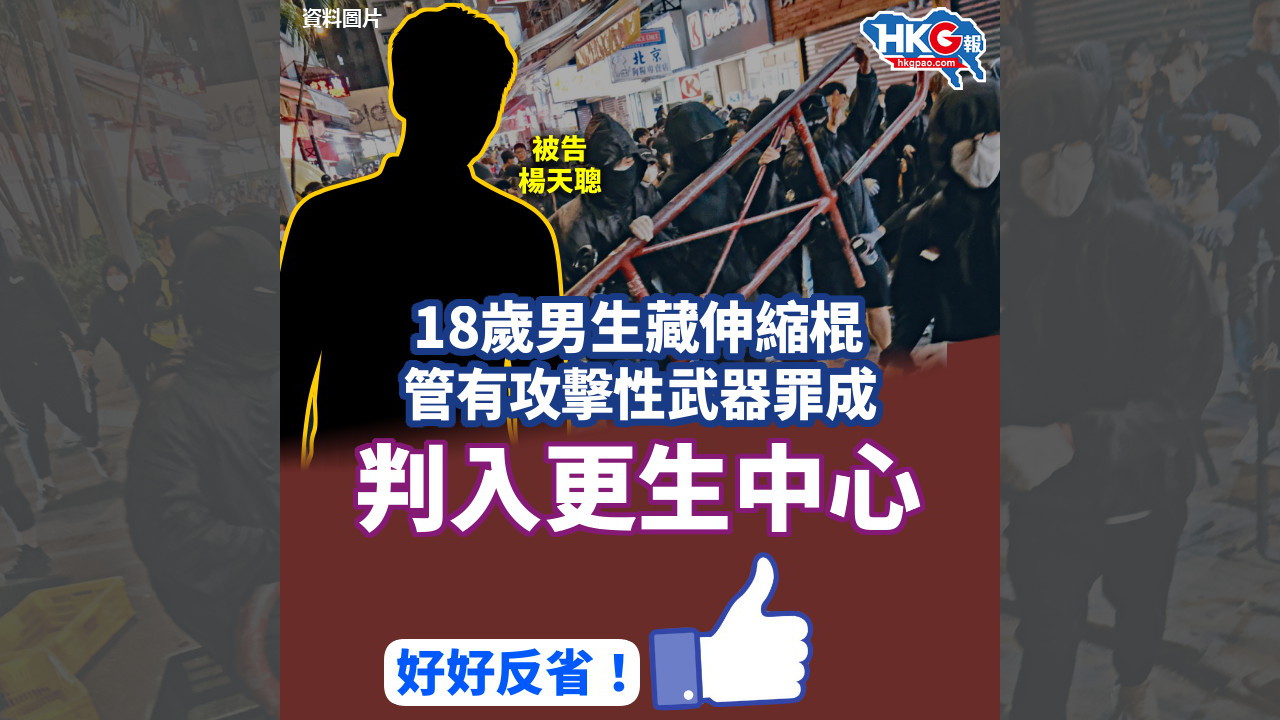 攜警棍,囚6周!24歲港大內地生陳子謀早前因途經上環示威現場,被警方搜出伸縮警棍。陳聲稱,因香港暴動事件太多,故在深圳購買伸縮警棍旁身自衛。陳子謀早前已認藏攻擊性武器,案件今西九龍裁判法院判刑,裁判官指被告未有使用警棍,控方亦未能證明陳子謀參與暴動,故判陳入獄6周。大家點睇?