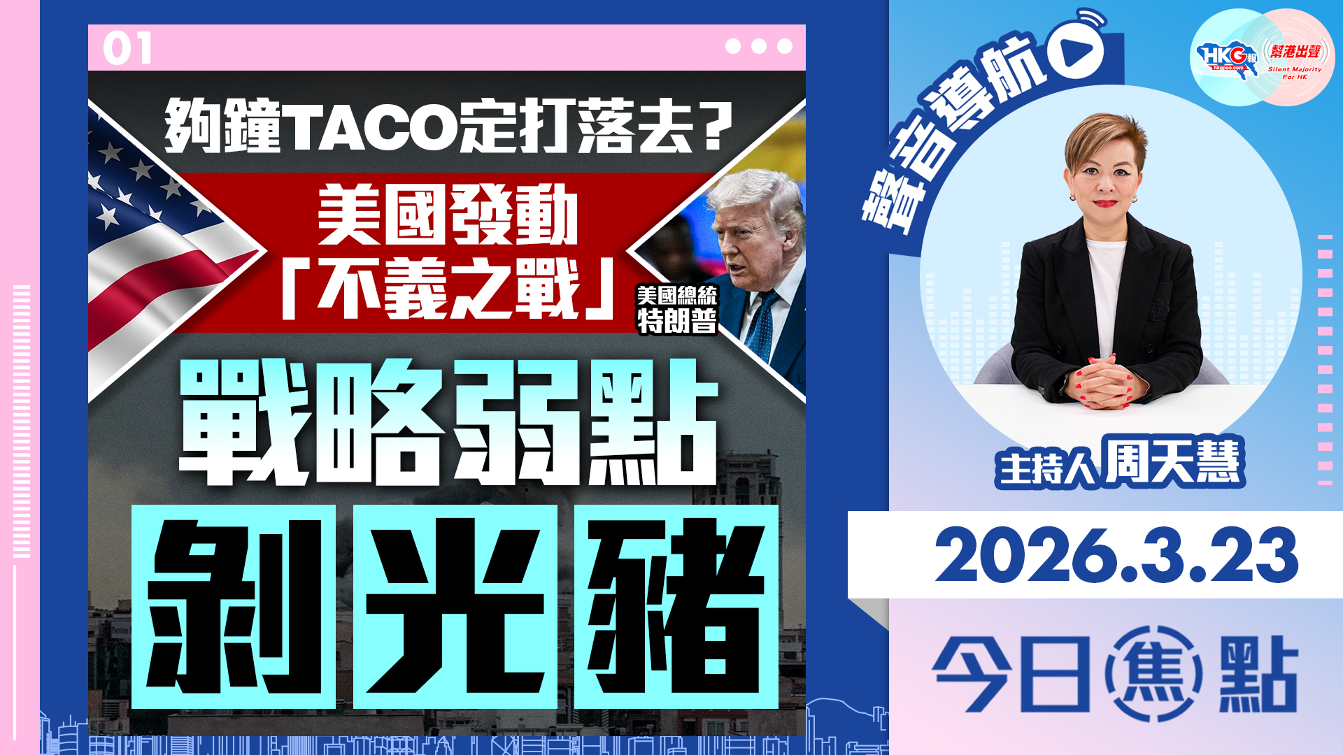 幫港出聲與HKG報聯合製作節目《今日焦點》,主持人周天慧與你細看賴清德言論揭示美國對台灣的真正態度,以及再有國安通緝犯累家人,千萬不容錯過!