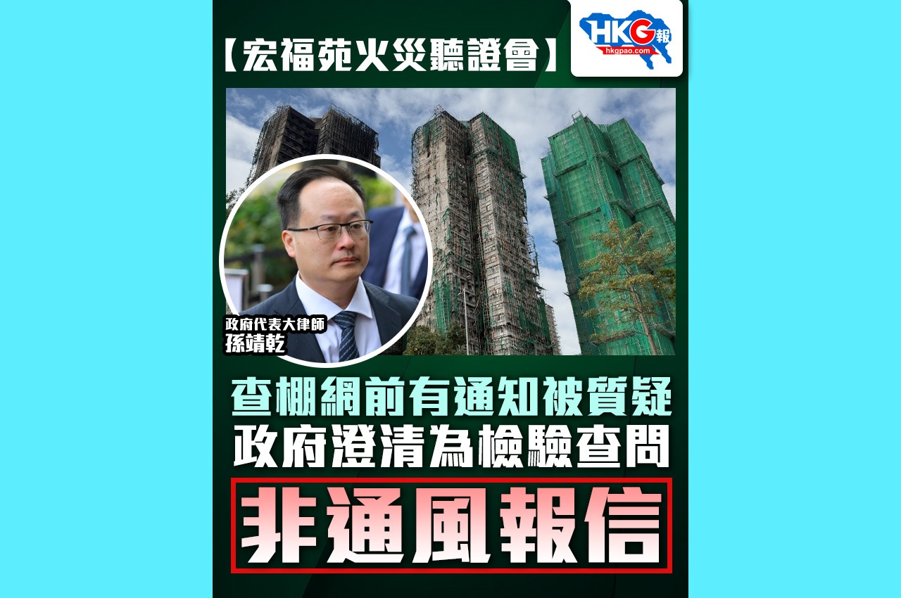 【宏福苑火災聽證會】查棚網前有通知被質疑 政府澄清為檢驗查問 非通風報信